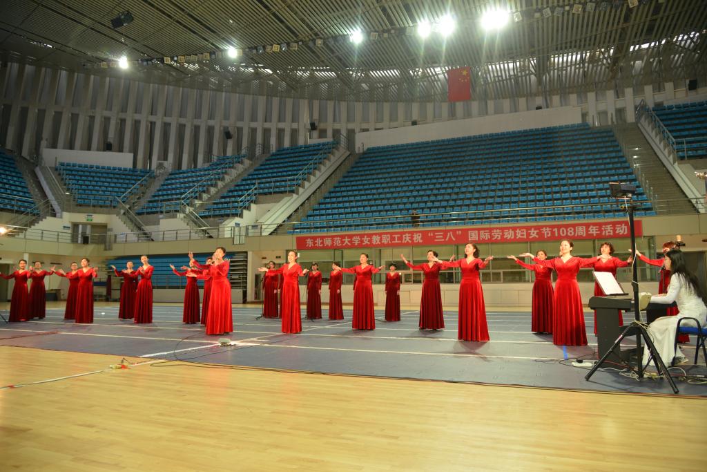 3月7日,学校综合体育馆内歌声嘹亮,舞姿翩翩,加油声、鼓掌声、欢笑声此起彼伏。为庆祝“三八”国际劳动妇女节108周年,校妇委会、工会举办了“巾帼心向党,建功新时代”主题活动。部分单位党政负责人,各基层单位工会主席、女工委员以及800余名教职工参与了活动。学校党委副书记王延出席活动并讲话。