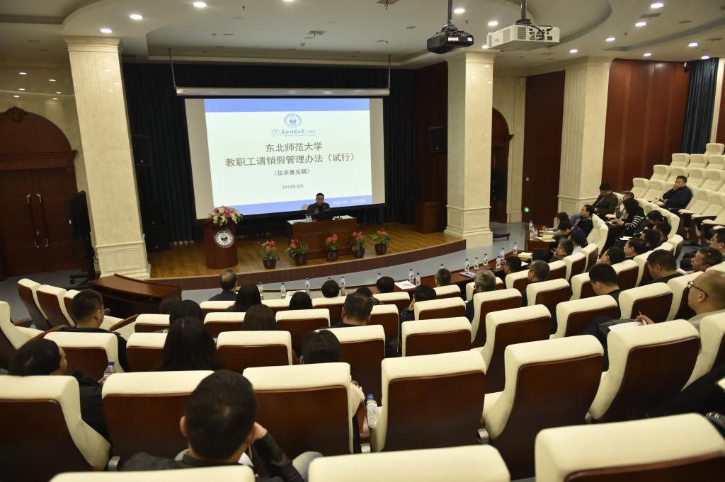 会上,人事处相关负责同志从制定背景、文件依据、具体条目等方面对《东北师范大学教职工请销假管理办法(试行)》进行了详细解读,并就该办法向“双代会”代表征求意见。张常钟代表第五届“双代会”执委会详细汇报了立案提案的书面回复情况。自2017年下半年第五届“双代会”提案落实工作启动以来,在执委会和相关职能部门的共同努力下,截至目前,第五届“双代会”立案的提案90%以上得到了书面回复,许多提案、建议正在推进落实中。通过提案和建议的回复工作进一步回应了广大教职工的关切,推进了校务公开。最后,会议还就校工会本学期即将推进的教职工福利发放,部门工会、妇委会干部业务培训,“三育人”先进个人评选,基层工会“职工小家”建设检查验收等工作做了通报部署。