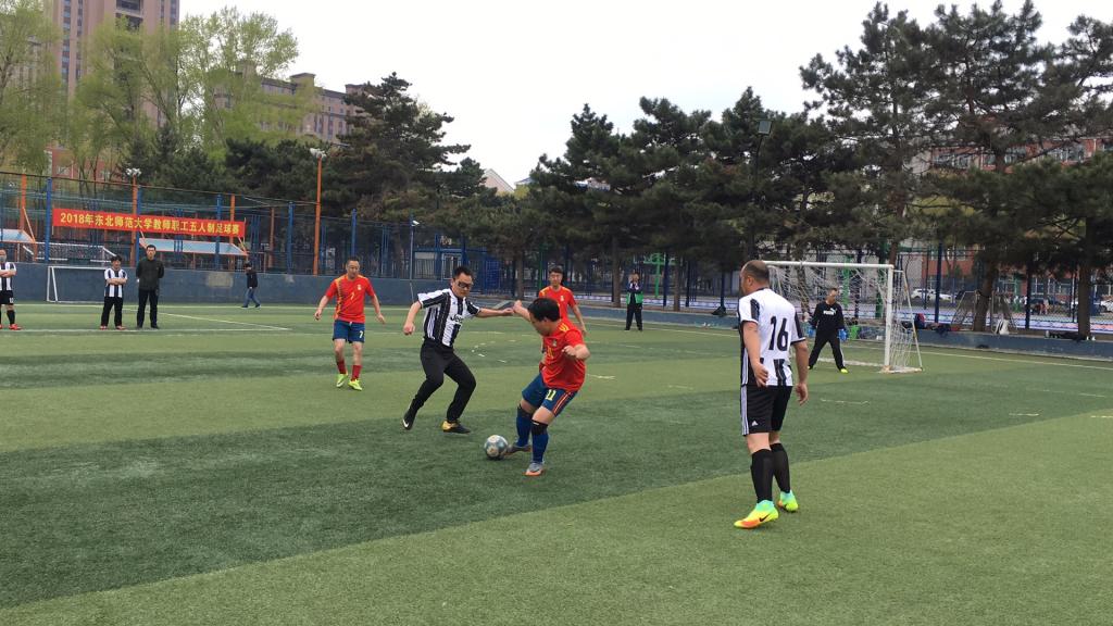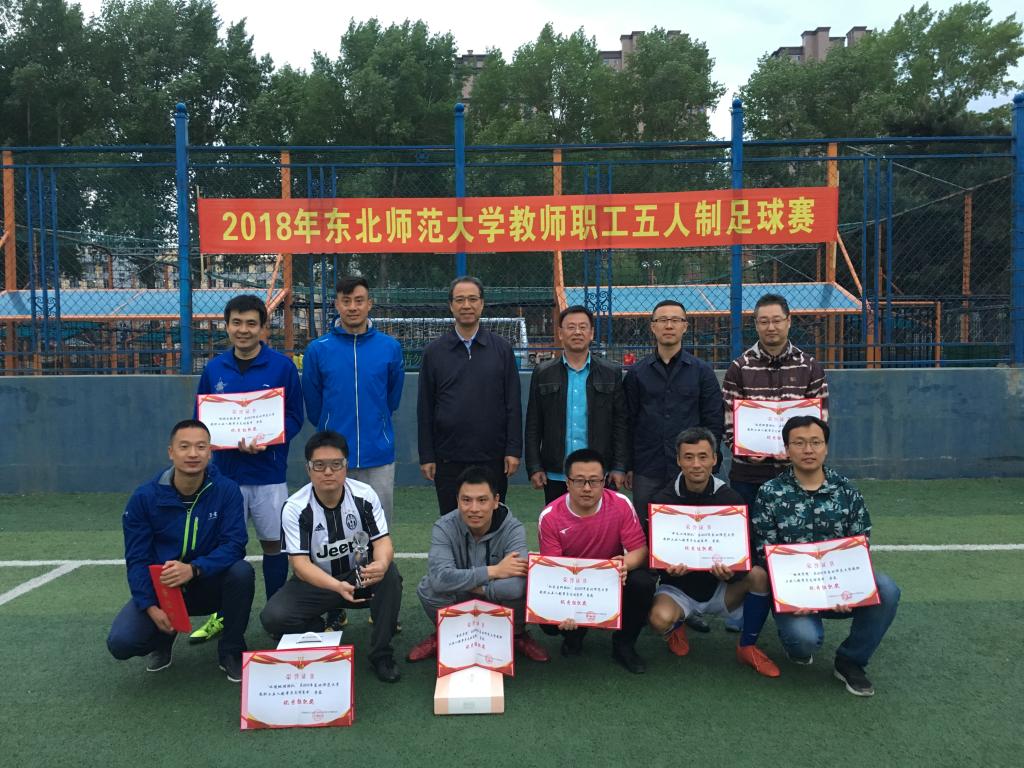 5月17日傍晚,由校工会主办,体育协会、体育学院、综合体育管理中心协办的2018年东北师范大学教职工五人制足球赛在本部校区小足球场进行了最后的决赛,环境地理联队7:6力克音乐学院,获得冠军!